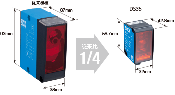 W32×H58.7×D42.8とダウンサイジング。体積比が従来の約1/4なので、装置の小型化に貢献します。