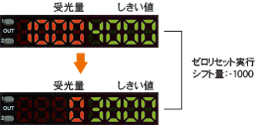 表示値を0にしたい場合に便利な機能です。複数台数使用する時の表示値のバラツキが気になる場合や、遮光時の表示値を0にしたい場合に有効です。