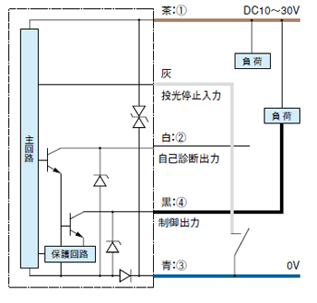 • ■ 自己診断出力や投光停止入力をご使用にならない時はリード線を切断し個別に絶縁テープを巻くなどして、他の端子と接続しないようにしてください。