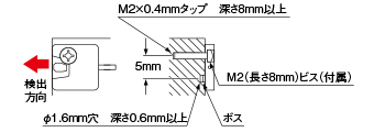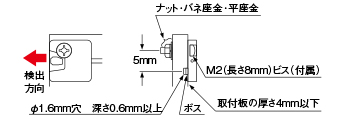 透過型ファイバは、同一形状です。取り付ける際は、取付ビス用の穴とボス用の穴の位置にご注意ください。