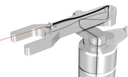 耐屈曲タイプのファイバユニットでロボットアームの先のワークを検出します。耐屈曲性に優れているので可動部への取付に最適です。