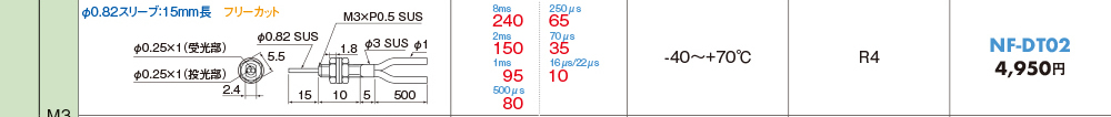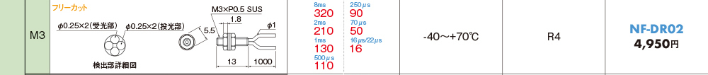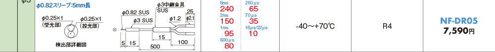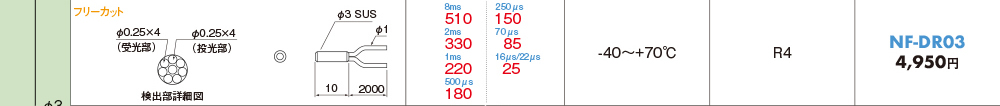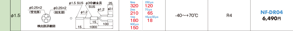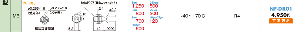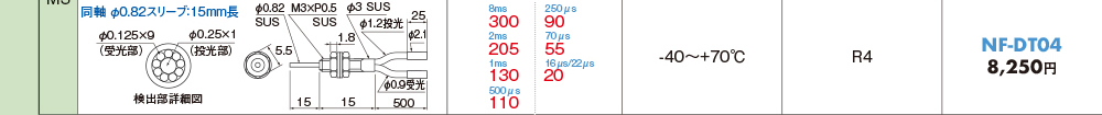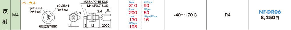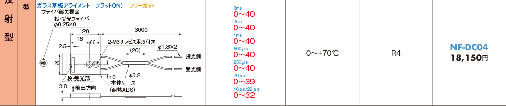 ●反射型ファイバユニットの検出距離は、500×500mm白色紙での値です。