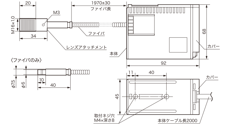 • 本体及びファイバ部〈BFL-30/標準レンズ装着時〉