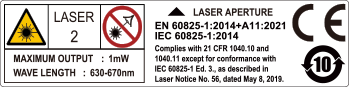 ・この製品は可視光レーザビームを放射しており、JIS C6802 / IEC60825-1 /FDA レーザ安全規格のCLASS1またはCLASS2に相当します。センサ側面には規格に沿ったシールが貼り付けおよび添付されています。