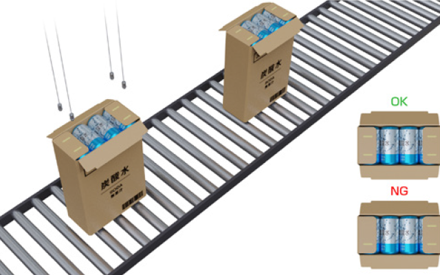 ホットメルトがカートンのフラップ4か所に塗布されているかを検査します。
