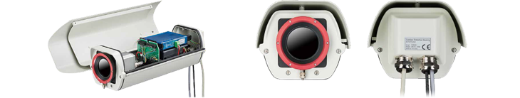 赤外線カメラの屋外設置用にIP66相当の防塵防水機能が搭載された屋外オプションです。