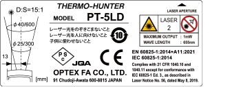 センサ側面には規格に沿ったラベルが貼り付けされています。