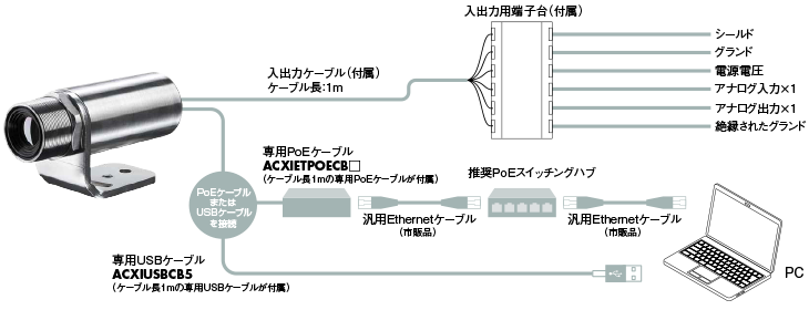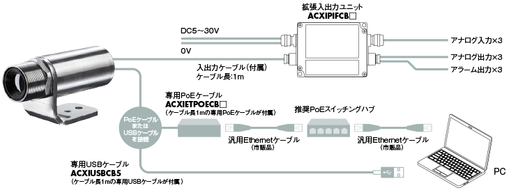 ※拡張入出力ユニットは最大で3台連結が可能です。詳しくはマニュアルをご参照ください。 ただし、Xi1Mを自律運用(PC レス)する場合、拡張入出力ユニットは1台までしか接続できません。
