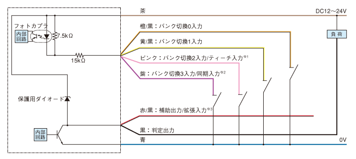 ※ティーチ入力と同期入力は、そのどちらか一方を拡張入力線(赤/黒)に割当て可能です。