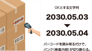 バーコードの内容を照合し、差異がないかチェック可能です。