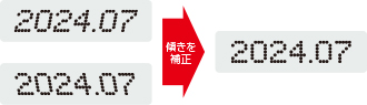 高速ワークにインクジェットプリンタで印字すると、文字が傾いて印字されることがあり、画像センサで認識すると印字内容が正しくてもNGと判定してしまいます。MVS-OCR2なら設定値「文字傾き」や「文字傾き補正」により、傾いた文字を補正して認識可能です。
