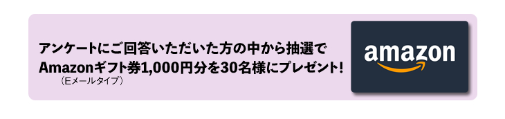 アンケートにご回答いただいた方の中から抽選でAmazonギフト券(Eメールタイプ)1,000円分を30名様にプレゼント!