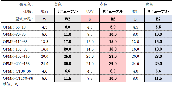表記の件、ご愛顧頂いておりますマルチリング照明 「OPMR/OPMR-CT シリーズ」について、下記の通りリニューアルを致しましたので、ご案内申し上げます。