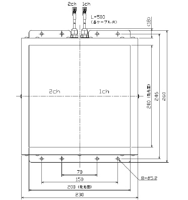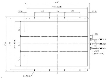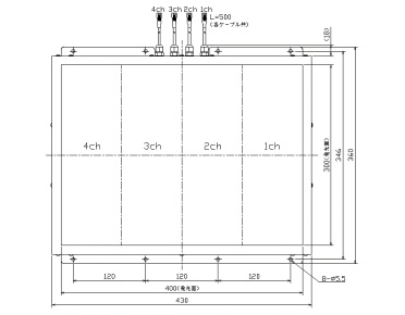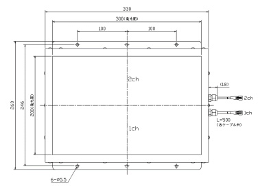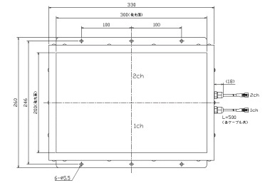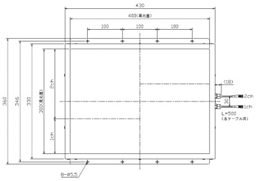 ただし、400X300mmサイズはケーブル出し位置および取付ピッチに変更があります。