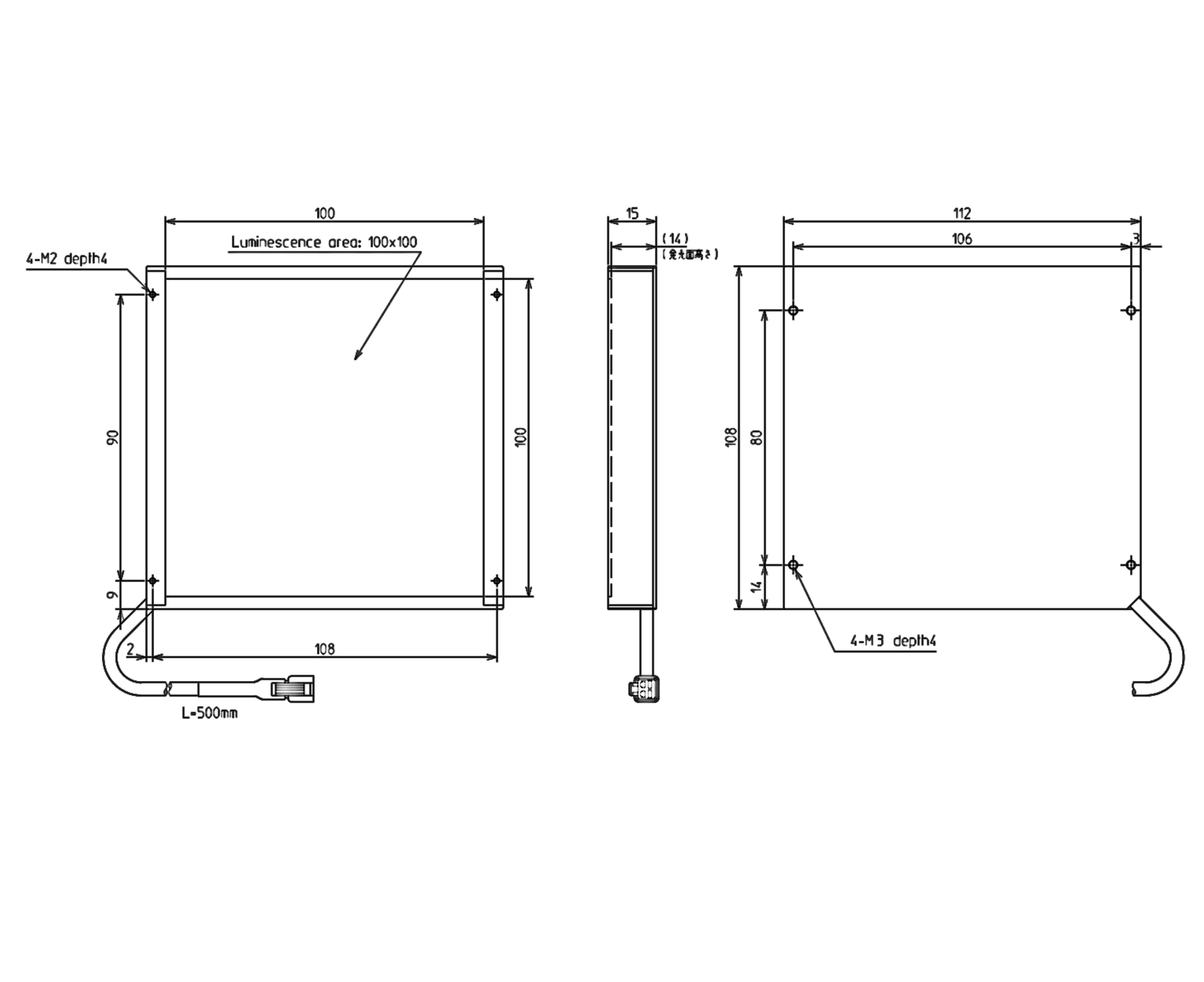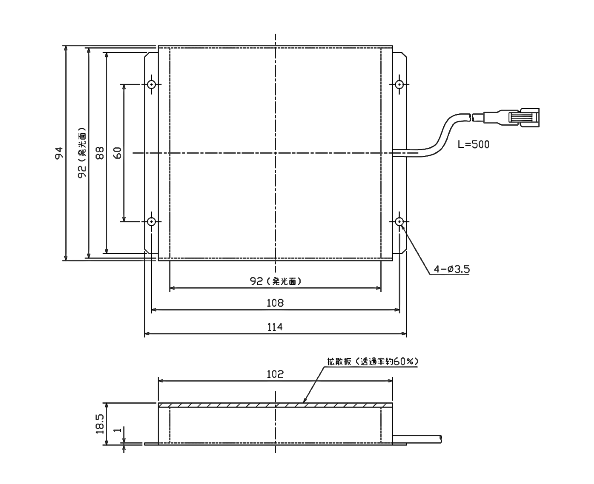| 発光面サイズ | 92×92mm | 100×100mm | 122×122mm | 125×125mm |