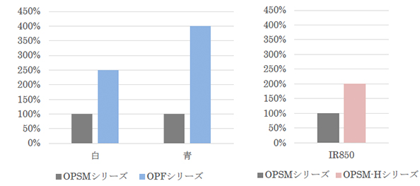| □ = W(白)、B(青) ■=W(白)、G(緑)、B(青) ※OPSMシリーズ(W,G,B,IR850)をベースとした特注サイズも同様に販売終了となります。 |