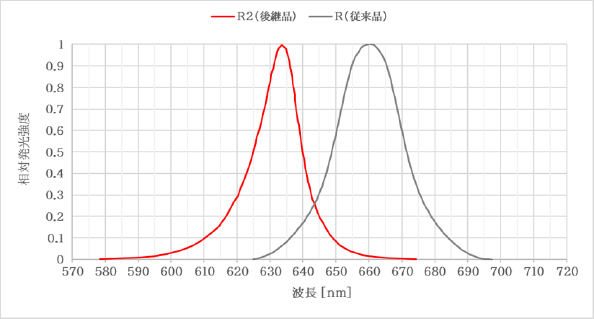 変更は、ピーク波長、明るさ、消費電力の3点です。