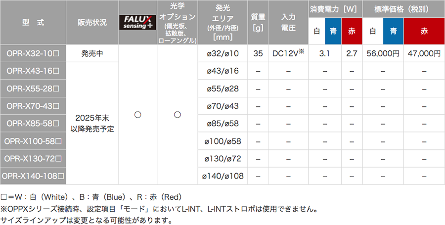および高輝度センシングリング照明「OPR-Xシリーズ」を発売