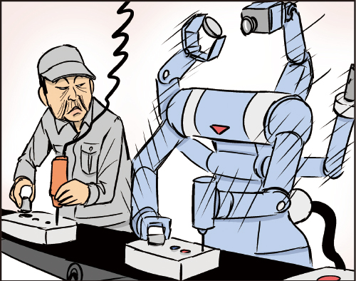 第二回の応募作品は、ものづくりの現場ならではの哀愁を帯びた作品を中心として、「人とロボットの関係」を表現する作品も多く見受けられました。2020年までに大企業で25%、中小企業で10%の組立工程におけるロボット化率向上などを掲げた「ロボット新戦略」が打ち出され、産業分野で