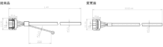 外部点灯制御用ケーブル(MIL14 ピンソケット) OP-ECBF14-32.変更個所