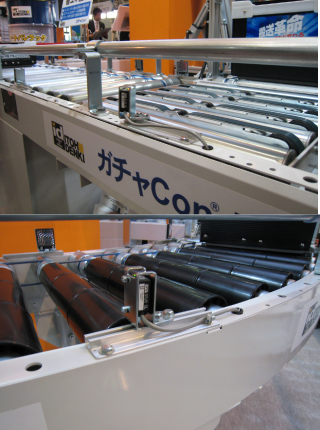 同じく日伝様ブース内で出展されていた伊東電機株式会社様のDCパワーモーラ搭載コンベヤキット「ガチャCon」に次世代アンプ内蔵センサZ-ecoシリーズを17台設置いただきました。