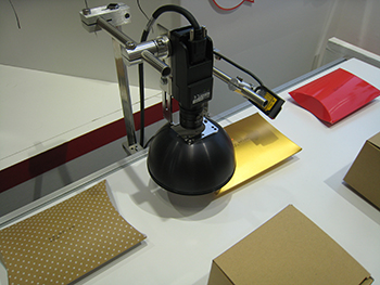 こちらのデモンストレーションでは段ボールと色違いの箱に印字された賞味期限の検査を行いました。