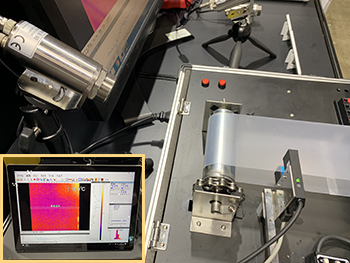 ロール to ロール方式の製造装置において温度管理に役立つ非接触温度計を展示しました。