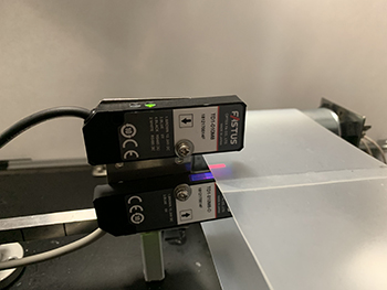 エッジセンサ「TD1シリーズ」を使ってシート材のエッジ測定を行いました。またローラーのすき間測定などの用途にも対応し、装置の巻取制御に役立ちます。