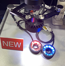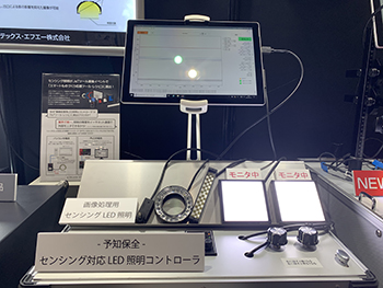 センシングリング照明「OPRシリーズ」の新サイズΦ43㎜を展示しました。従来よりも明るさがアップしたことでスピードが速い電子部品などの外観検査に最適です。