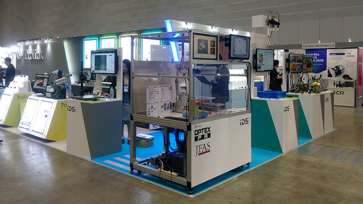 オプテックス・エフエーでは、ドイツの産業カメラメーカーIDS maging Development Systems GmbHの日本法人「アイ・ディー・エス株式会社」と国内代理店2社の合同ブースとして出展しました。