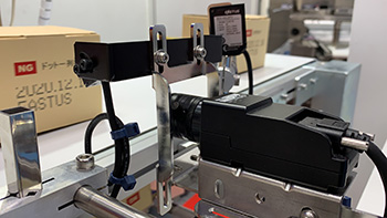 カートンの印字の欠け、一列ドット抜け、日付間違いを検査しています。段ボールのようなコントラストがとりにくいワークでも安定して文字を抽出できます。またFOOMA会場では多くの包装機メーカー様のブースで搭載していただきました。