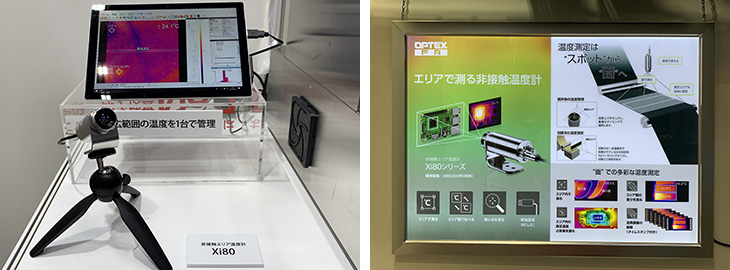 非接触エリア温度計「Xi80シリーズ」の展示を行いました。従来の“スポット”で温度を測る非接触温度計とは違い、“エリア”での温度測定が可能なため1台で広い範囲の温度測定ができ、食品製造の前工程や後工程の温度管理にも最適です。