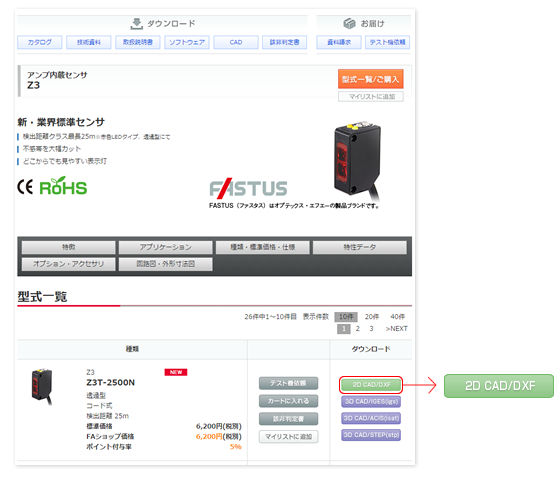 各シリーズの機種リストに表示されているCADボタンをクリックして、簡単なアンケートに答えるだけでダウンロードしていただけます。
