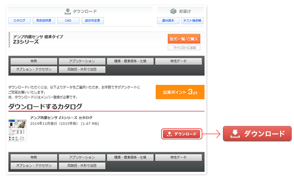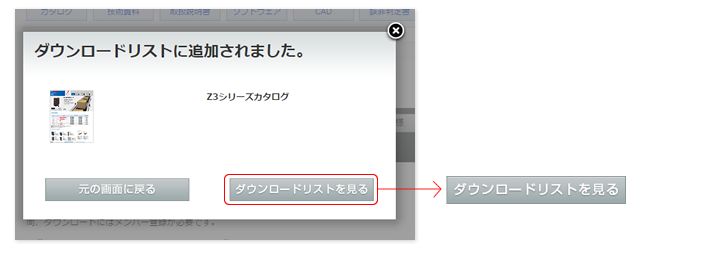 ダウンロードされたいカタログのダウンロードボタンをクリック