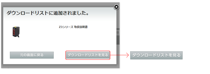ダウンロードされたい取扱説明のダウンロードボタンをクリック