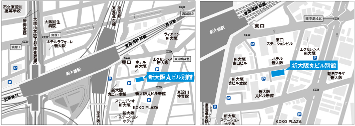 - JRの場合:東海道本線「新大阪駅」東口から徒歩5分