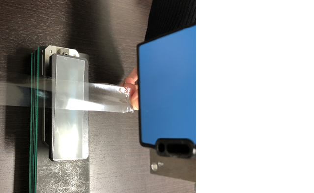 反射ミラーや反射シートを使ってリフレクタ型にすれば、透明フィルムでも安定して測定が可能です。