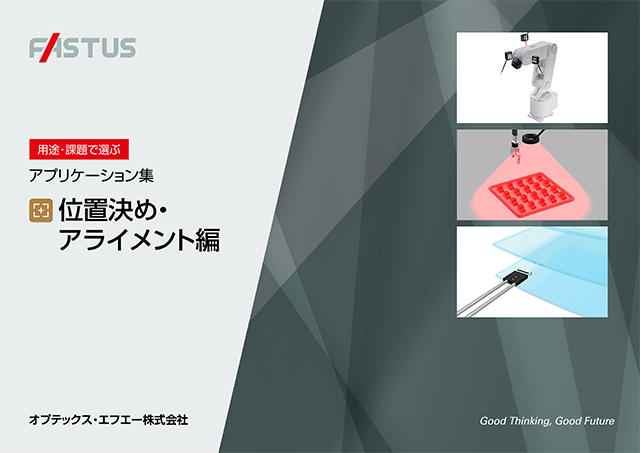 部品ピッキングのための中心座標確認/ロボットの停止精度検査/基板ピッキングのためのアライメント/金属部品のピッキングアライメント/フープ内のウェハの有無・飛出し・傾き検出/ウェハフレームのエッジ検出/パレットの位置決め/溶接位置の倣い制御/黒色部品のレーザマーキング用位置検出/鋼板の位置ずれ検出/高温環境でのチップ搭載位置決め/ロボットアームの位置決め/インデックステーブルの位置決め/基板のポジショニング/微小穴の検出による位置決め/パレットからの部品ピッキング/ガラス基板のアライメント/円柱ワークの位置決め/カートンのセンタリング/ガラスウェハノッチ検出/搬送ロボットのアーム垂れ計測/チップ部品のエッジ検出
