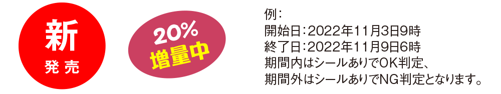 - POPシールには新製品シールなど有効期間が設定されているものがあり、同じ商品でも翌日からPOPシールを貼らない場合があります。
