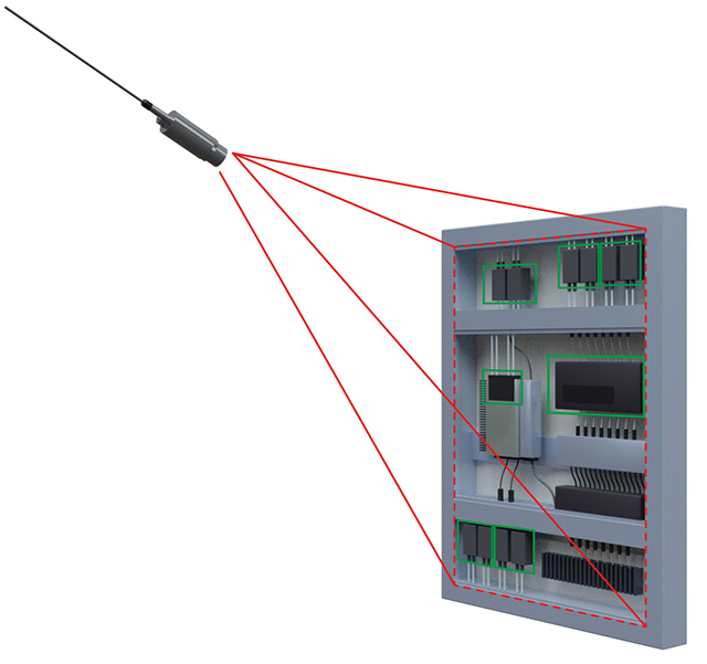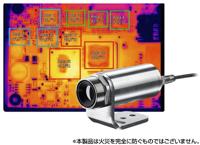 必要な箇所に測定エリアを複数個つくり(緑枠部分)、そのうちの一つでも想定以上に温度が上昇した場合は、警報を出すことが可能。予知保全に役立ちます。