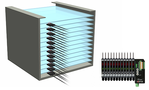 ラック内のすべてにガラスがあるかどうかを限定反射ファイバのNF-DC06で検出します。