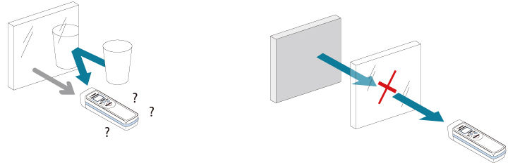 非接触(放射)温度計は、固体や液体の表面温度を測定します(気体や炎及び固体・液体の内部は不可)。下記の条件は、測定が困難です。