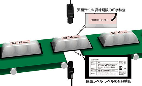 画像センサ工程改善集-賞味期限の印字と裏貼りラベル有無検査