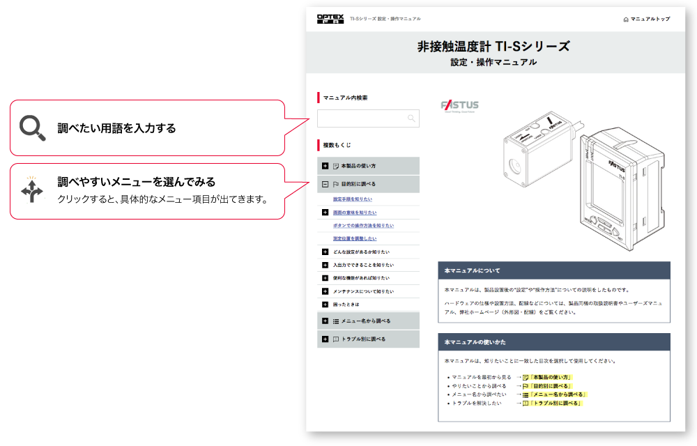 ※TI-S シリーズWEBマニュアルでは、製品設置後の“設定”や“操作方法”について説明しています。