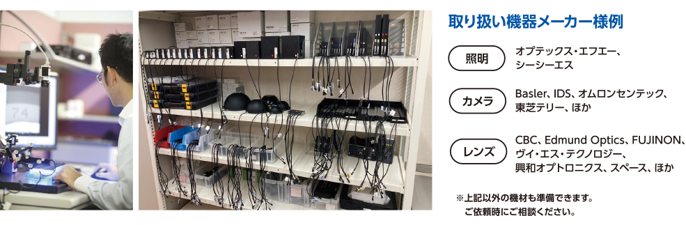 - テスト内容や設置条件に合わせて最適な照明を1000機種以上の中から選定します。力メラ・レンズの最適化も同時に行います。